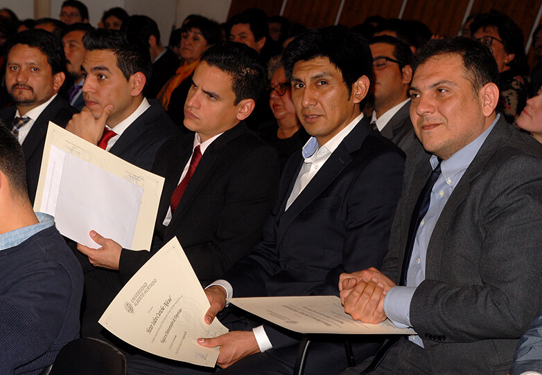 Por otra parte, 34 alumnos recibieron sus diplomas de Magíster correspondientes a los siguientes programas: Magíster en Gestión de Personas en Organizaciones (desarrollado en conjunto con la Facultad de Psicología UAH), Magíster en Administración de Empresas- MBA, Magíster en Economía Aplicada a Políticas Públicas y Magíster en Economía de la UAH y Master of Arts in Economics de Georgetown University.