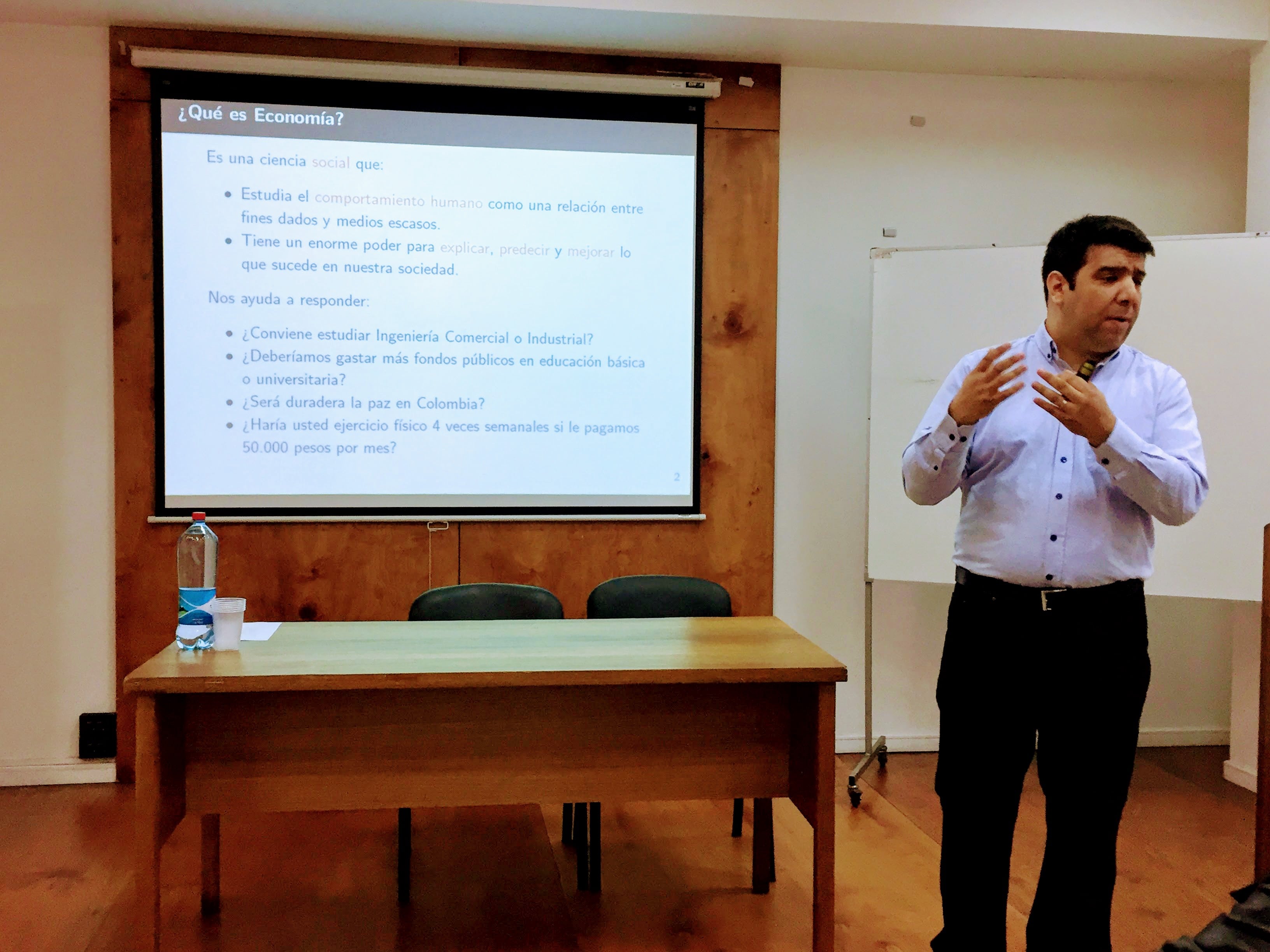 Otro de los mitos que el académico derribó fue que las personas piensan que la economía es pura matemática. A lo que explicó que la matemática es sólo una herramienta que los economistas usan para pensar de una forma ordenada. Más que nada la economía tiene mucho de intuición, de usar modelos para explicar fenómenos del día a día. “La Economía es una ciencia social, estudia a las personas y la problemática de esas personas, no es solamente banca, ni finanzas, es absolutamente todo, es salud, educación, etc. Lo que nuestros alumnos hacen está relacionado con lo que pasa en el día a día, usando la lógica para pensar y explicar estos fenómenos. Entonces no es sólo teoría, son problemas del día a día que tratamos de entender”.