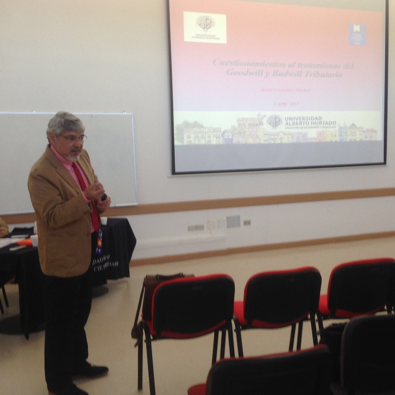 Por su parte, René González participó presentando dos presentaciones: “Cuestionamientos al Tratamiento Tributario del Goodwill y Badwill”, la que realizó a partir de un ensayo muy técnico donde cuestionó que en un determinado tipo de fusiones de empresas, al contribuyente no se le permite la utilización legítima de pérdidas surgidas en este proceso, sino hasta el término de giro de su empresa – caso del Goodwill – o se le obligue a caer en un injusto proceso de doble tributación interna – en el caso del Badwill; todo ello en una manifiesta legislación pro fisco que norma en evidente desmedro de un determinado tipo de contribuyentes. La otra presentación fue “El Impuesto Territorial: un impuesto al patrimonio con rasgos inconstitucionales”, la que trató sobre el impuesto territorial – mal llamado contribuciones –, en el que explicó que es un impuesto al patrimonio que se contrapone con las garantía constitucionales establecidas en nuestra carta Fundamental. Es un impuesto perverso que empobrece y atenta, principalmente, a la clase media que, después de años de trabajo, concentra sus ahorros mayoritariamente en su fondo de pensiones y en una vivienda de uso habitacional, que al pagar impuestos también permiten la doble tributación interna.