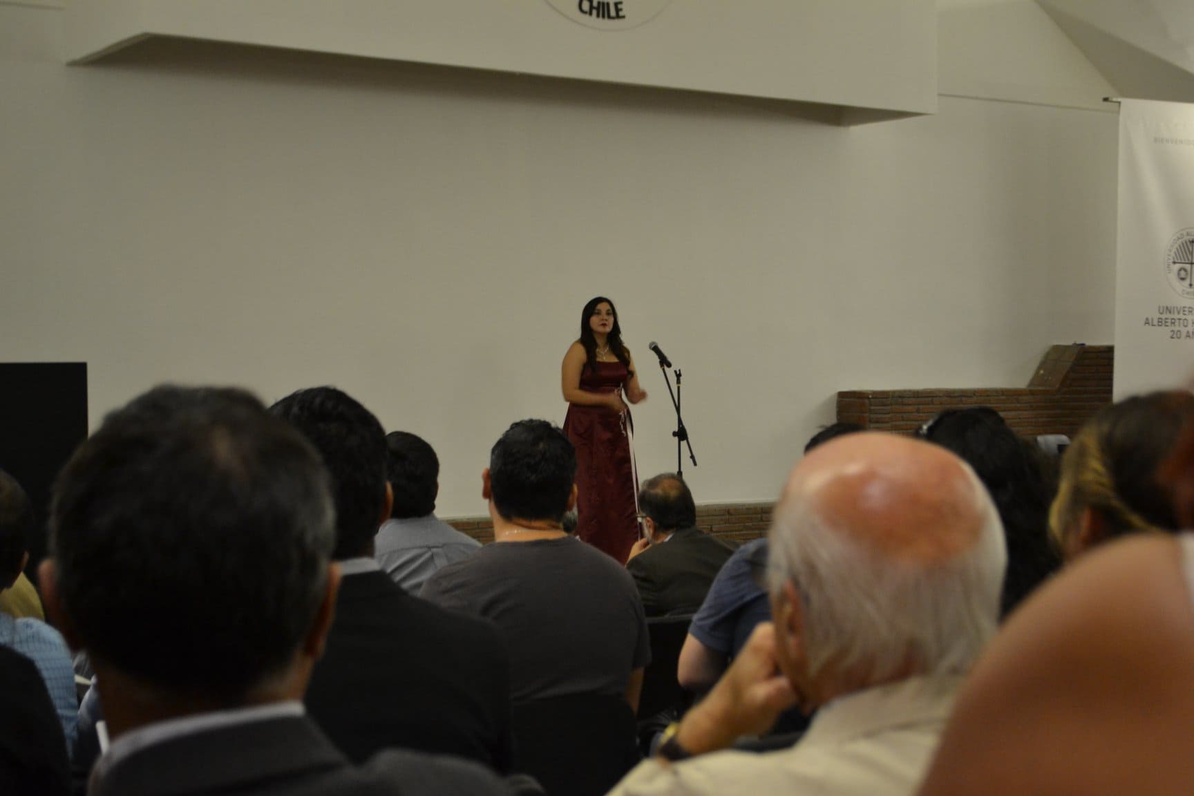 El evento comenzó con la presentación de Belem Abraham, cantante lírica mezzo soprano y estudiante de la carrera de Interpretación Superior mención Canto del Instituto de Música de la UAH, quien interpretó interpretará “La Jardinera” de Violeta Parra y “Por ti volaré” de Andrea Bocceli.